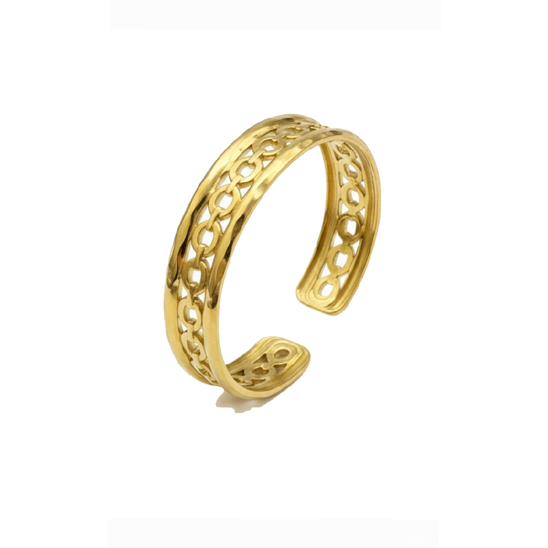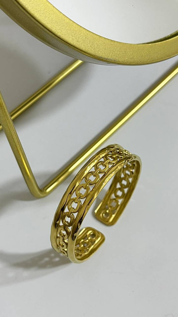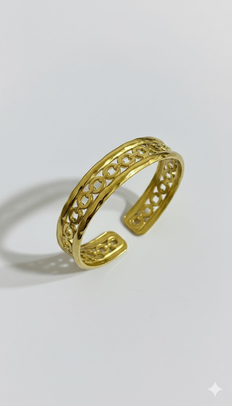 Add a touch of timeless elegance and sophistication to your look with the Golden Laurel Cuff. Inspired by ancient Greek laurel wreaths, this piece symbolizes victory and honor, making it more than just an accessory. It features an open cuff design meticulously engraved with intricate, interlocking leaves. It is perfect for everyday wear or for adding a luxurious accent to your evening outfit. Lightweight and comfortable, this is the essential statement piece your jewelry box needs.