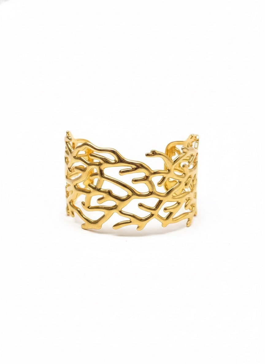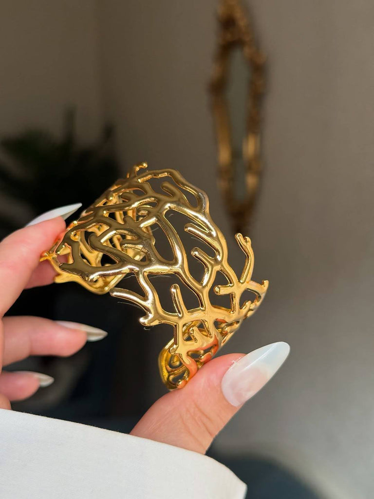 Add a touch of timeless elegance and sophistication to your look with the Golden Laurel Cuff. Inspired by ancient Greek laurel wreaths, this piece symbolizes victory and honor, making it more than just an accessory. It features an open cuff design meticulously engraved with intricate, interlocking leaves. It is perfect for everyday wear or for adding a luxurious accent to your evening outfit. Lightweight and comfortable, this is the essential statement piece your jewelry box needs.