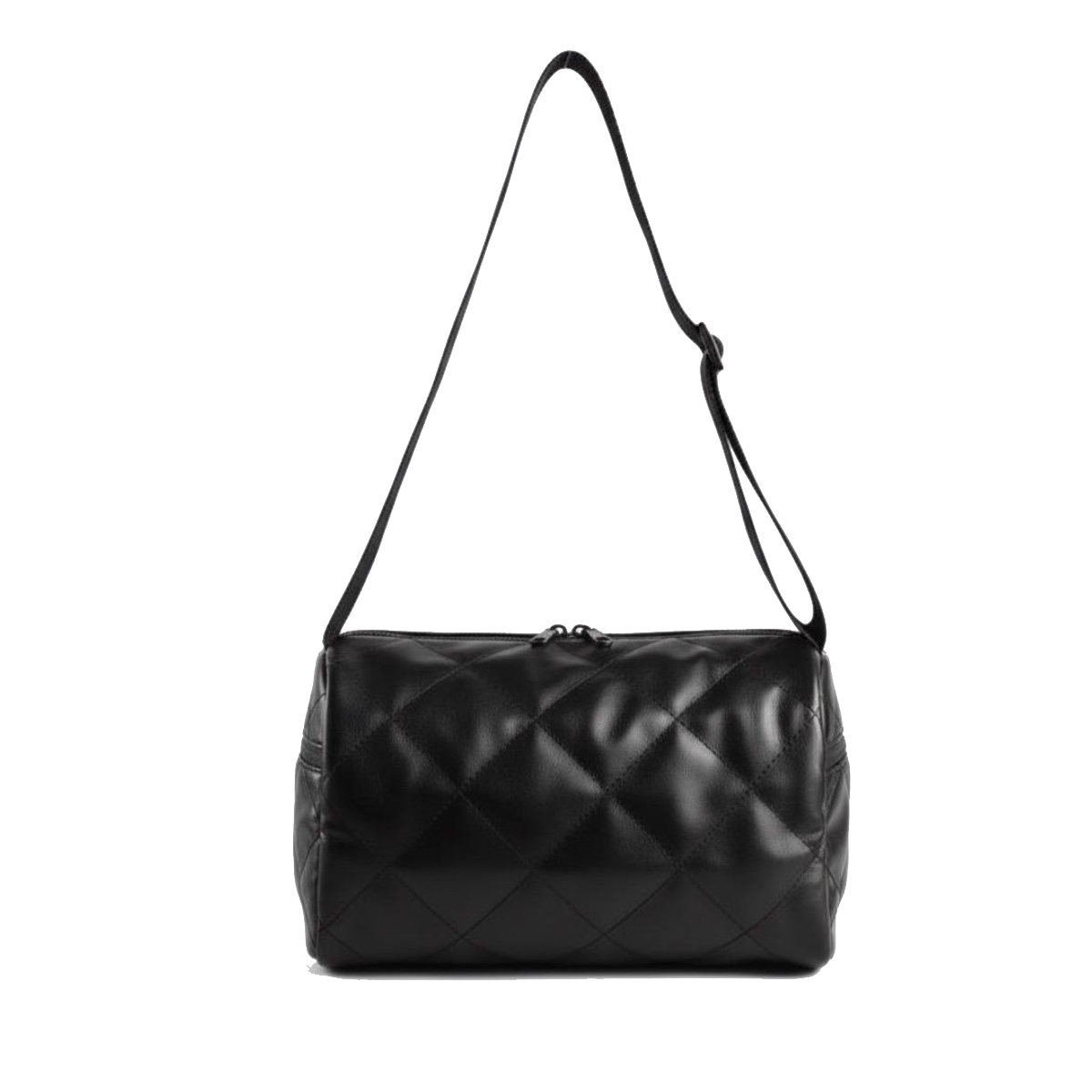 Stay stylish on the go with this compact black quilted gym bag. Designed from durable, water-resistant material with a sleek diamond pattern, it’s perfect for carrying your workout gear or daily essentials. The roomy main compartment, easy-access front pocket, and adjustable wide strap make it both practical and comfortable. Ideal for gym sessions, travel, or casual everyday use.