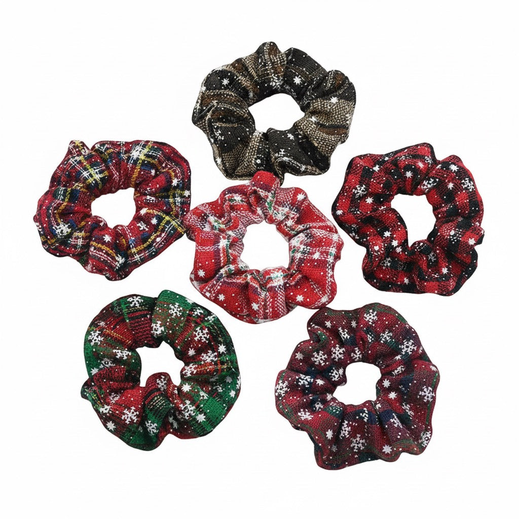 This 4-piece set features classic festive patterns, including red and green plaid, playful stars, and snowy white details. Perfect for adding a touch of cheer and comfort to any winter hairstyle.
